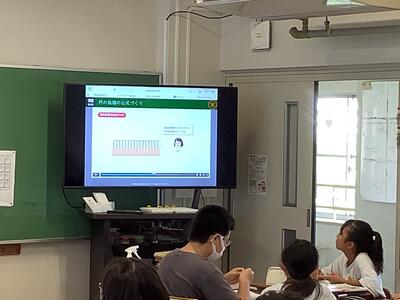 6年生の算数「円の面積」を求めるために、円を2等分、4等分・・、64等分と切り、長方形に近づけて求めていきますが、タブレットだと、その操作も一瞬です。
