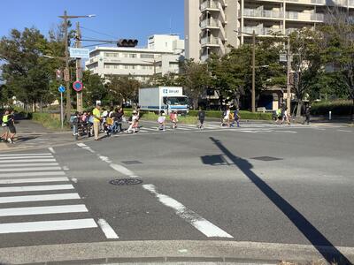 7月に通学路の一部が変更になりましたが、皆さんがルールを守っていること、さらに地域の方々が横断歩道に立っていただいていることで、安全に登校できています。