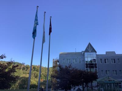 ポールに掲揚した校旗がなびかないくらい、穏やかな朝を迎えました。