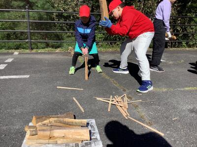 薪割り、ご飯を研ぐ、野菜を切る、火を起こすなど、全て自分たちでしていきます。