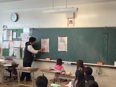 新しい漢字を子どもたちが事前に学び、みんなに教える場面があります。