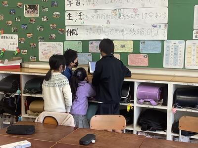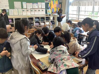 高学年は、低学年に寄り添いながら作業を見守る場面や内容をしっかりと伝える場面があります。