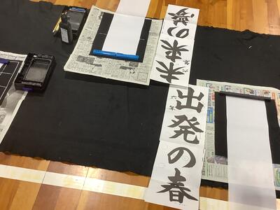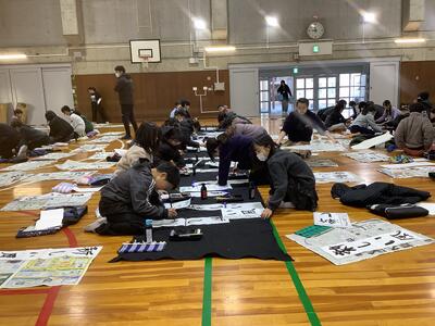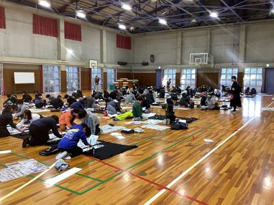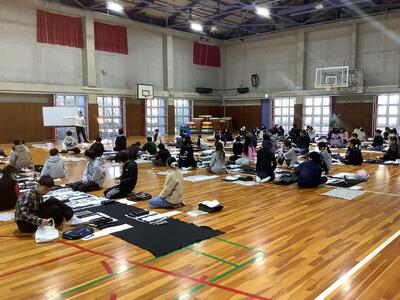 新しい年を迎え、5・6年生が書き初め大会を体育館でしました。