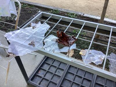 教室を回っていると、池の氷が・・。