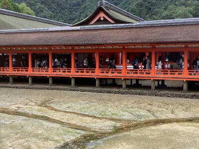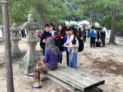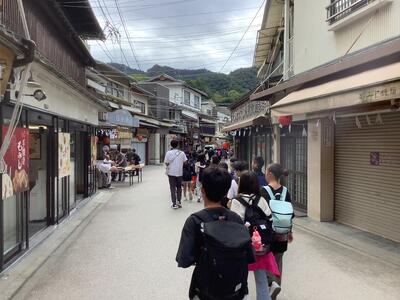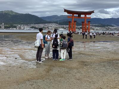 宮島では、厳島神社、外国の方へのインタビュー、お土産買いと盛りだくさんの活動です。