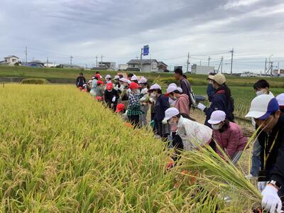 稲刈りは、春に皆さんが植えた稲を刈りました。