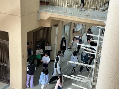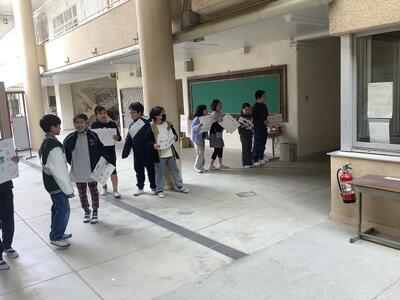 また、水平避難訓練中は、緑の看板を探しながら公園まで行ってほしいいことも伝えています。