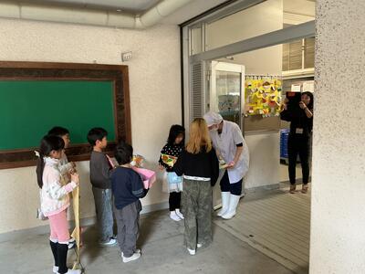 1年生は、全クラス代表の子が直接調理師さんに渡していました。
